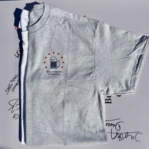 This is our Gray BDOA logo shirt. Front design includes BDOA logo in red & blue, with a blank back.